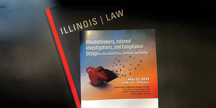 American member David Simon and Austrian member Felix Ruhmannseder participated in a conference titled “The Significance of Whistleblower Protections and Incentives for Internal Investigations in the U.S. and Germany,” held at the University of Illinois School of Law on 23 May 2023.